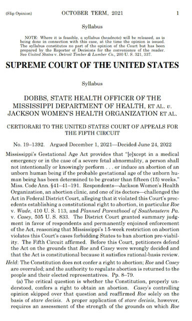 - MORE ON THE SCOTUS ABORTION DECISION (Culture Watch)